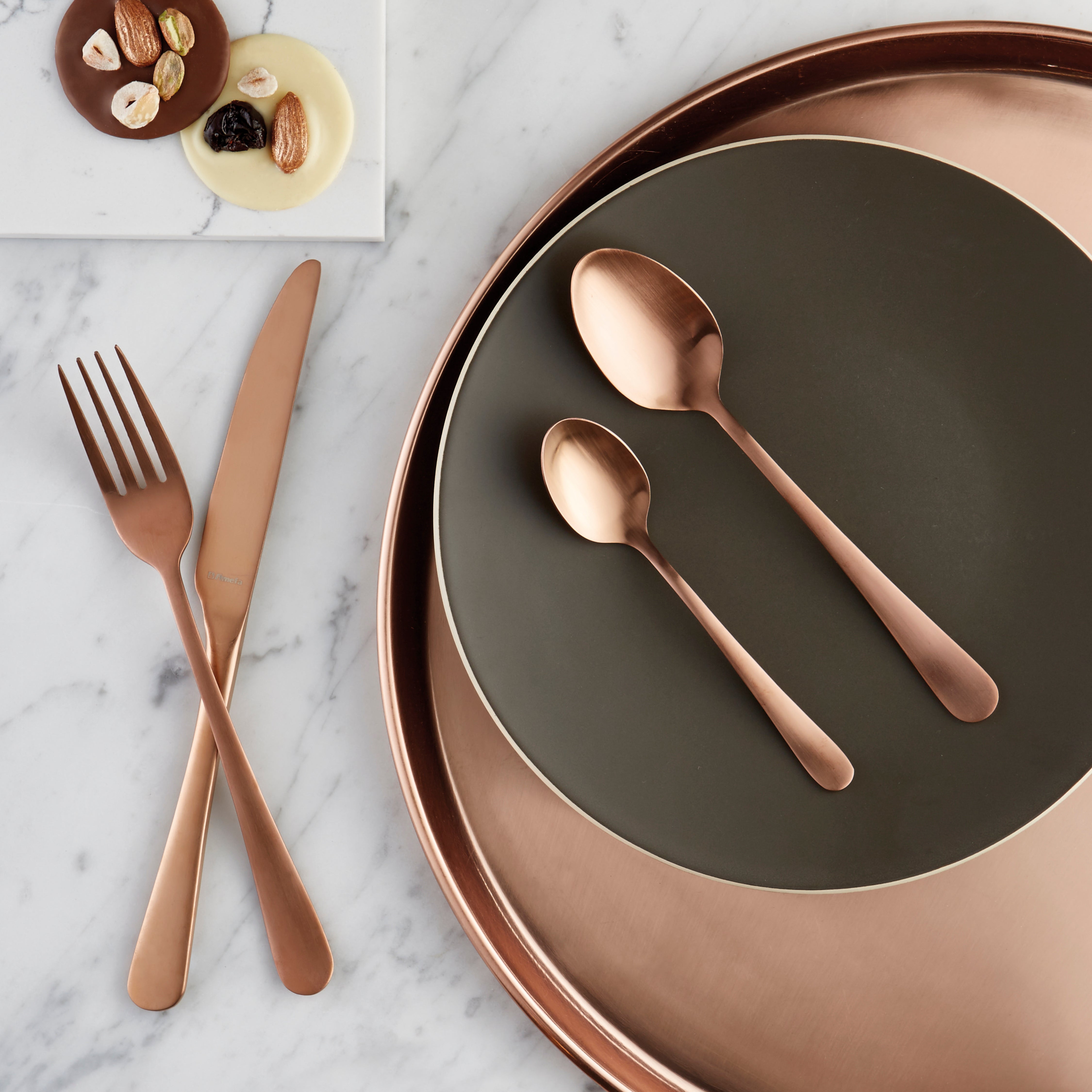 stylisch-harmonisch kupfer-satiniertes Besteckset