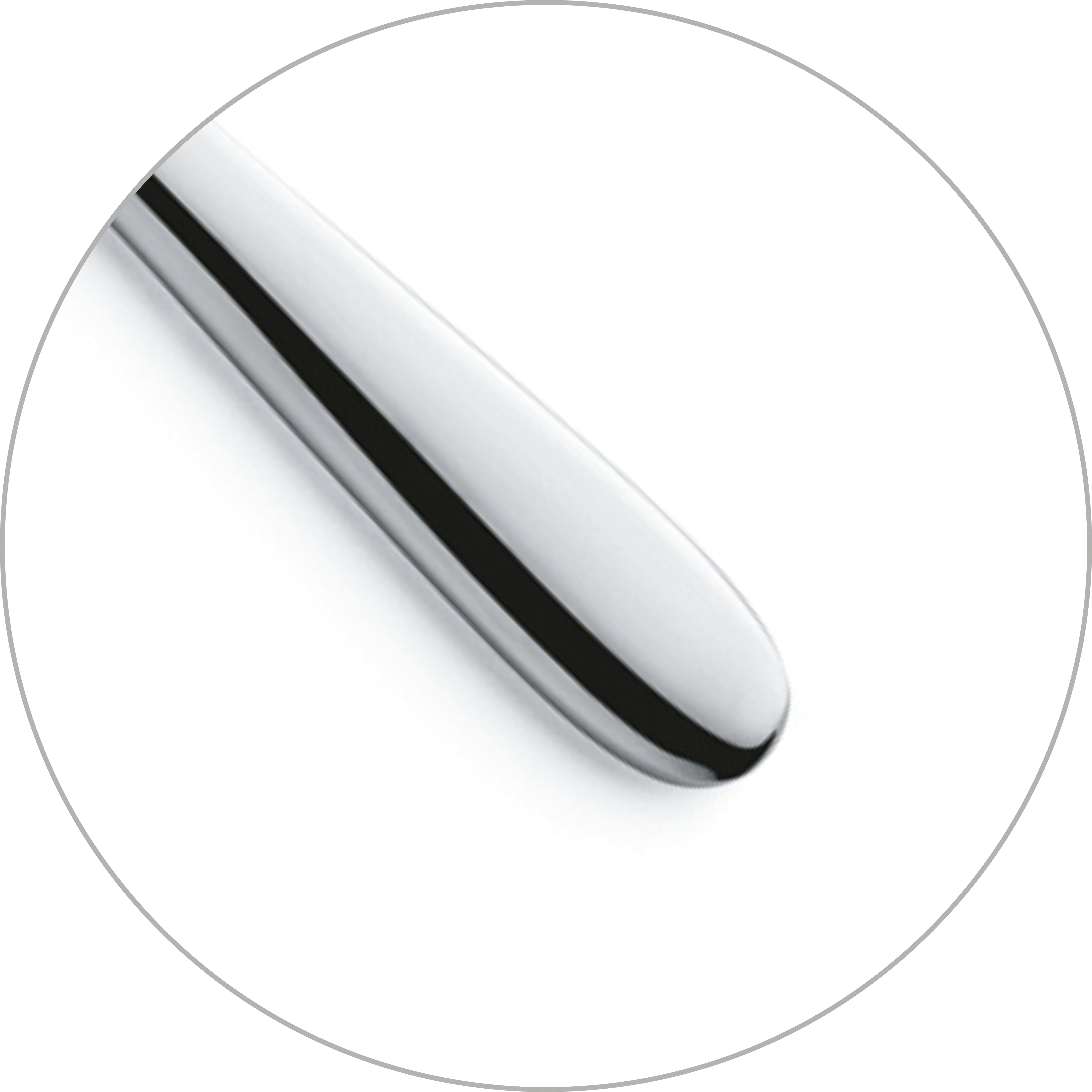 Das optisch unaufdringliche, jedoch sehr elegante Design des Bestecks Nova von Paul Wirths überzeugt auf ganzer Linie. Dank der feinen Rundungen wirkt das Besteck besonders harmonisch, zugleich liegt es sehr angenehm in der Hand und verleiht dem gedeckten Tisch ein ruhiges Ambiente. Hergestellt aus hochglanzpoliertem 18/10 Edelstahl.